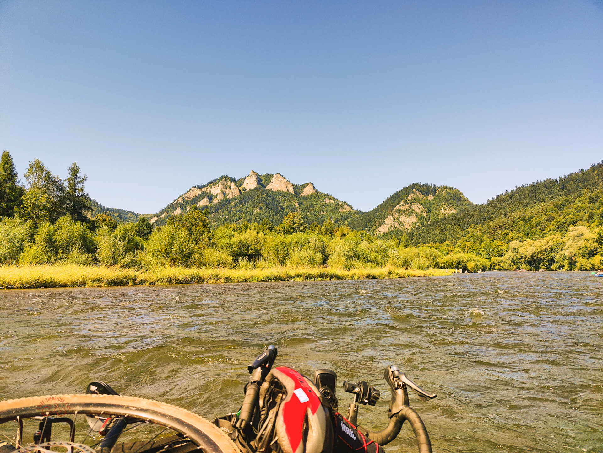 Sam spływ był dla mnie bardzo kosztowny, filmowałem fragmenty z mojej kamery GoPro, którą miałem zamocowaną na oryginalnej opasce na głowę. Problem w tym, że w pewnym momencie poczułem jak opaska zaczyna mi podjeżdżać w grę głowy – sprzętu nie udało się uratować przed wpadnięciem do wody. Przybiłem do brzegu i szukałem w miejscu zdarzenia, jak i poniżej kamery brodząc po pas w rzece – jednak bez rezultatu. Po pół godzinie się poddałem. Tak więc filmów z rowerowej pętli wokół Tatr, jak i ze spływu nie mam – muszę zapamiętać wrażenia w głowie.