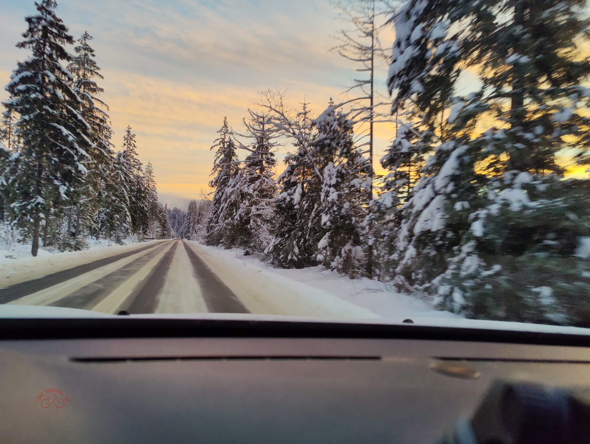 W piątek w drodze do Murzasichla, omawialiśmy warianty trekkingu. Zdecydowaliśmy się wybrać w sobotę, na trekking do Doliny Pięciu Stawów Polskich. Rano dojechaliśmy na parking na Polanicy Białczańskiej. Według prognoz, wschód słońca nie zapowiadał się, zbyt ciekawie, więc zdecydowałem, że wyjedziemy dopiero o godzinie 7:00, czyli właśnie o wschodzie słońca. W piątek wieczorem rozważaliśmy wjazd wcześniej aby być gdzieś na miejscu widokowym – ale przekonałem Ewelinę, że warto się wyspać. Oczywiście wschód słońca był bardzo ciekawy, co podziwialiśmy podczas jazdy samochodem.