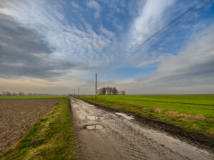 Pokrzepiony posiłkiem, uzupełniłem w sklepie zapas wody i znów wjechałem w las. Początkowa euforia przebywania w nim, zaczęła się przeplatać z walką jazdy o każdy następny kilometr. W końcu około godziny 15, zaczęło delikatnie kropić – a to już było zaskoczenie bo według prognoz miałem nie mieć takiej atrakcji (no może male szanse na opady w nocy). Spakowałem aparat z pleców do sakwy i ruszyłem dalej.