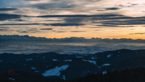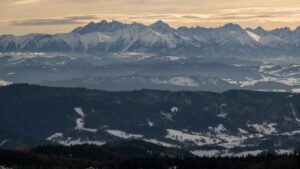 Człowiek przyzwyczaja się do luksusów, wiec czasem zaczyna grymasić. Wschód słońca był słabszy niż zachód słońca. Na wschodzie chmury, były dość nisko, więc sam wschód trwał bardzo krótko. Panorama na Tatry była jednak bardzo dobra, część zachodnia (szczyty), ukryte były w chmurach.
