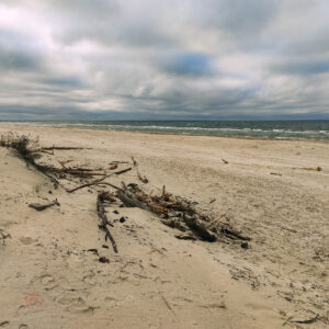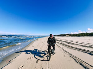 Wpierw pojechaliśmy miejsce biwakowe nad Bałtykiem, chcieliśmy sprawdzić jakie warunki tam panują. Mieliśmy szczęście bo pojawiło się słońce, więc miło spędziliśmy czas na plaży. W zasadzie pojawiła mi się w głowie myśl aby wrócić po sprzęt biwakowy i po prostu spędzić czas na leniuchowaniu, aby odpocząć przy szumie fal. Jednak, chęć przejażdżki wygrała, w końcu przecież mieliśmy wrócić tutaj na noc.