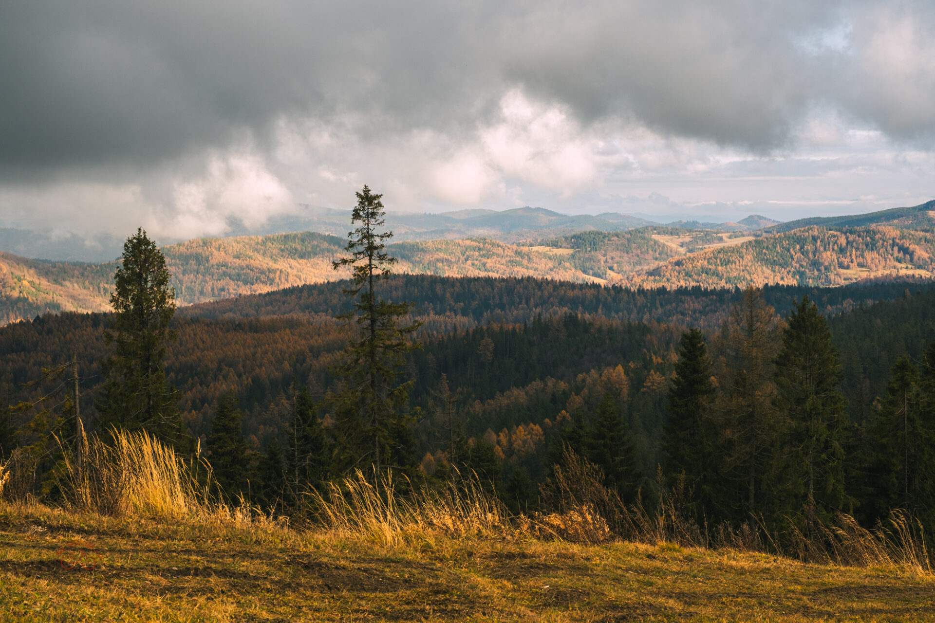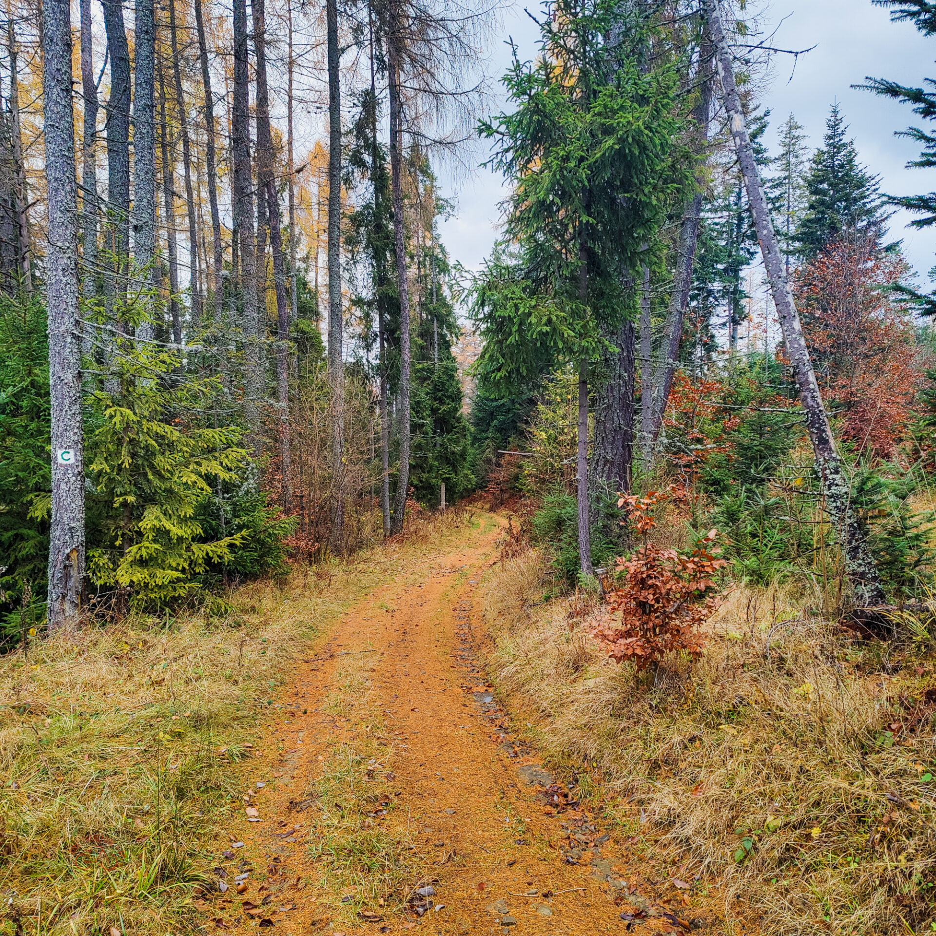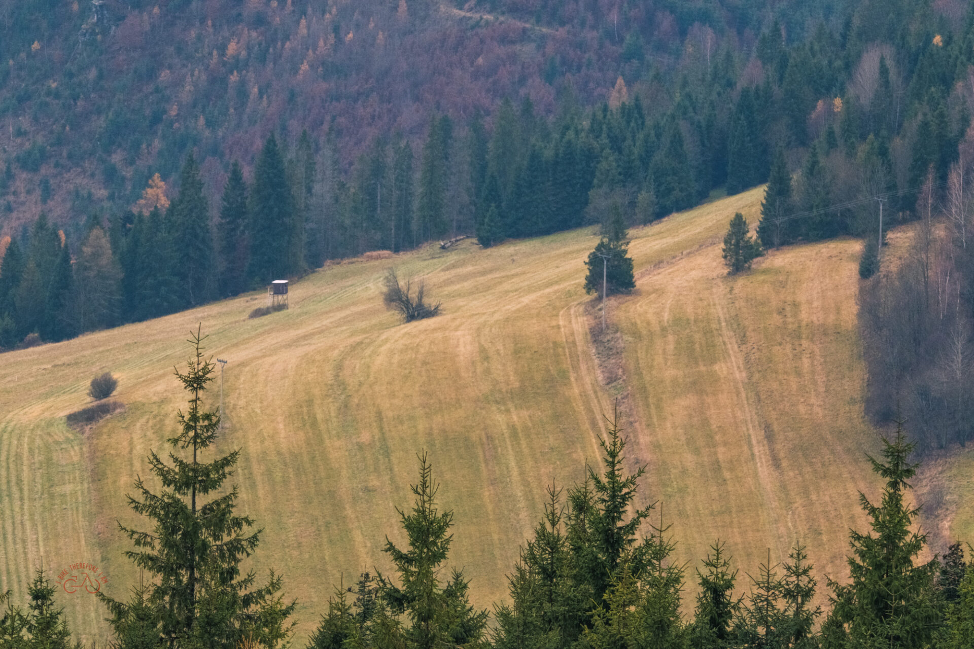 Z Bachledovka, zjechałem ścieżką rowerową, która prowadziła żółtym szlakiem pieszym do Malá Franková. Po prawdzie było tutaj dużo prowadzenia roweru, bo teren był dość stromy, nawierzchnia mocno błotnista, lub wilgotna trawa, lub bardzo dużo liści. Tak więc, czasem dla bezpieczeństwa wolałem prowadzić rower.