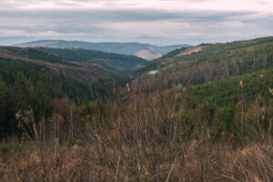 Ze Zdiaru, skierowałem się na Bachledka, tam gdzie jest znana Ścieżka wśród korony drzew. Podjazd był dość strony, szeroką szutrową drogą techniczną, nachylenie średnio było od 8-13%. Byłem w szoku bo jechało mi się bardzo dobrze, w zasadzie w 99% wszystko podjechane oprócz krótkich błotnistych odcinków.